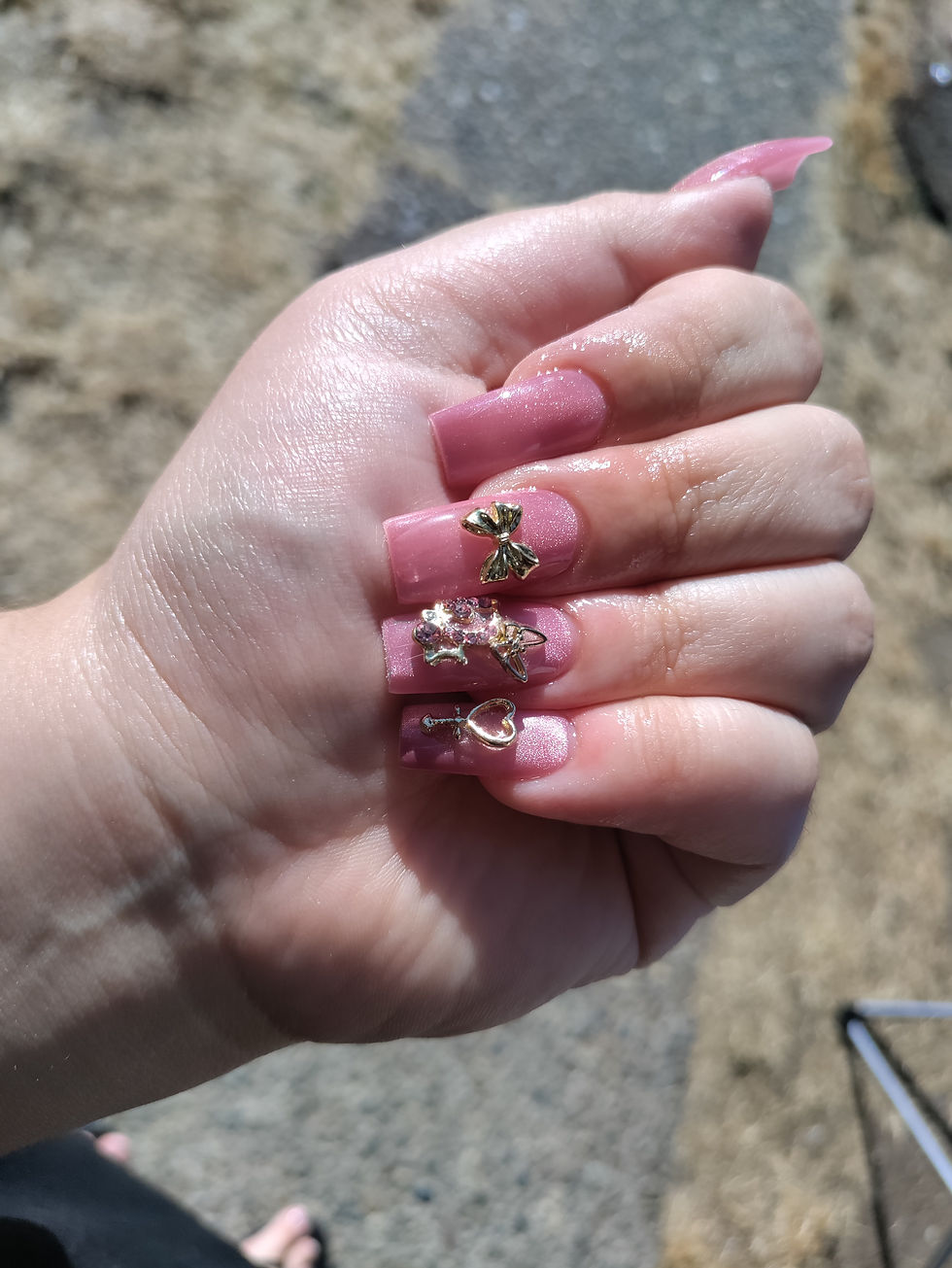 Medium almond black French tips w/lpink bows